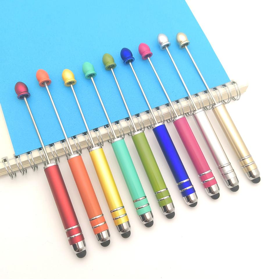 Nouveaux produits coloré bricolage 1.0mm stylos à bille en plastique perle stylo à bille stylet écran tactile stylo à perles pour étudiants enfants cadeau