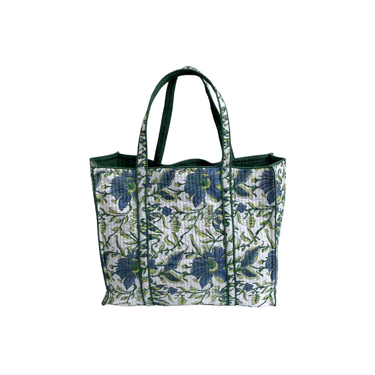 Nouveaux produits sac fourre-tout matelassé en coton imprimé bloc à la main traditionnel 100% coton avec poches intérieures pour les soirées