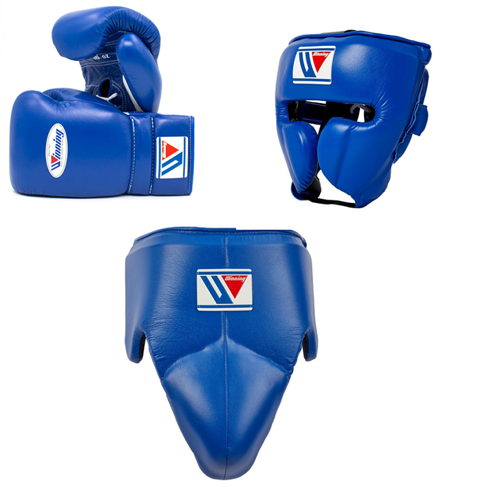 Nouveaux gants de boxe gagnants authentiques de qualité supérieure professionnels ensemble de cuir de vitesse gants de boxe gagnants ensemble de protection de la tête et de l'aine.