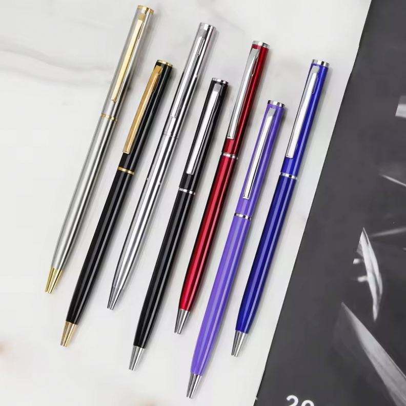 Nouvelle promotion : Stylos à bille métalliques fins et abordables, personnalisables avec logo, stylo à bille métallique fin à mécanisme rotatif avec clip doré ou argenté