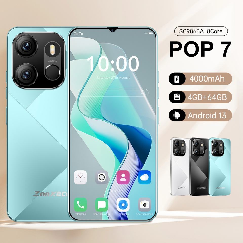Nouvelle promotion ZNNXECC POP7 Octa Core 4+64 Go 6,6 pouces 90 Hz Android 13 Reconnaissance faciale pour l'authentification Prix de gros