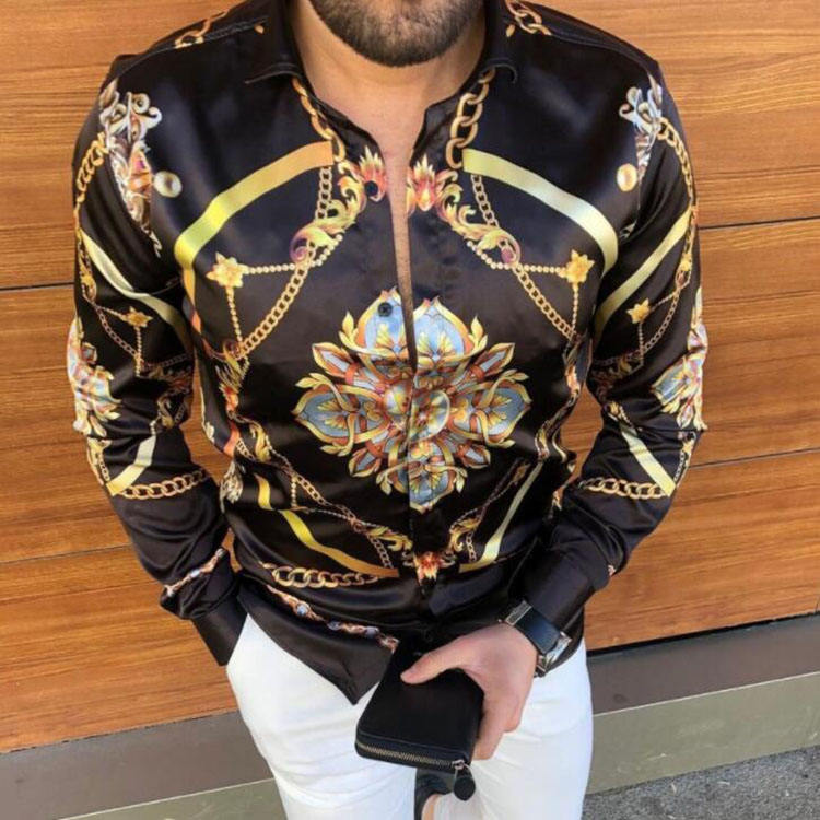 Nouvelle Chemise Homme Style Punk en Satin Coupe Ajustée à Manches Longues Imprimé Floral Décontractée pour Fête Respirante et Confortable