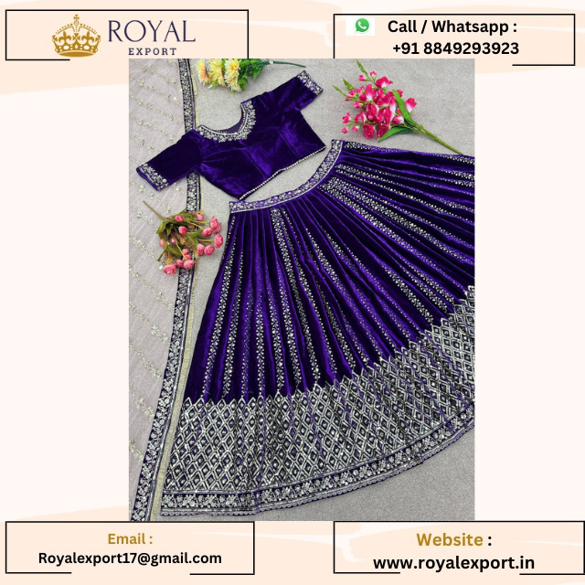Nouvelle couleur violette Viscose velours broderie séquence travail mariage Collection Lehenga Choli avec Dupatta surat