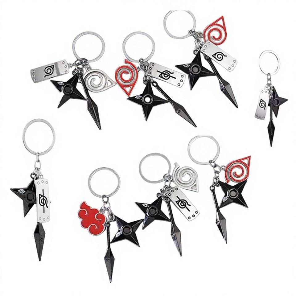 Nouveau R-Sale Porte-clés en alliage métallique trois pièces, style dessin animé Anime Rebel Ninja, avec motif Shuriken et protection frontale, impression numérique