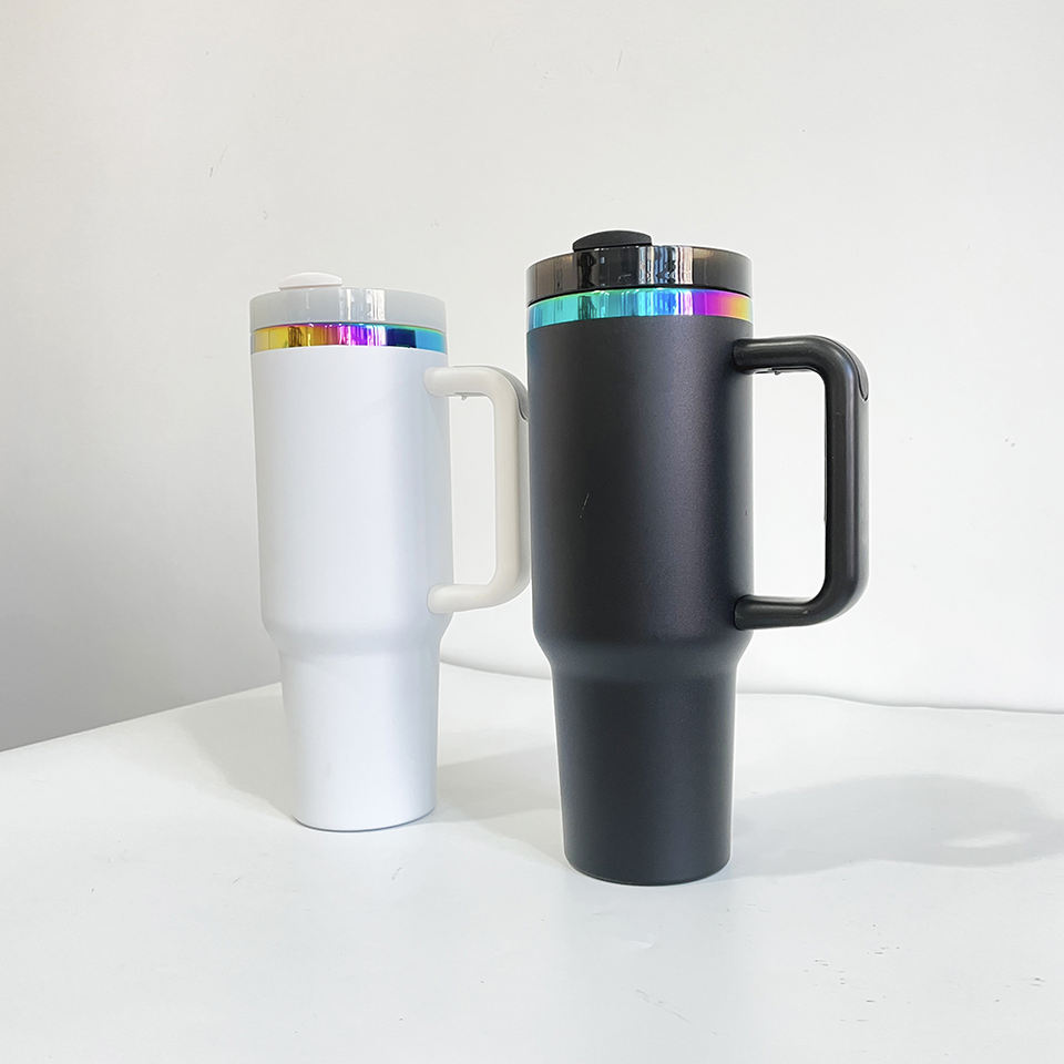 Style ::Gobelets à sublimation blancs 40oz avec poignée, effet scintillant et pailleté