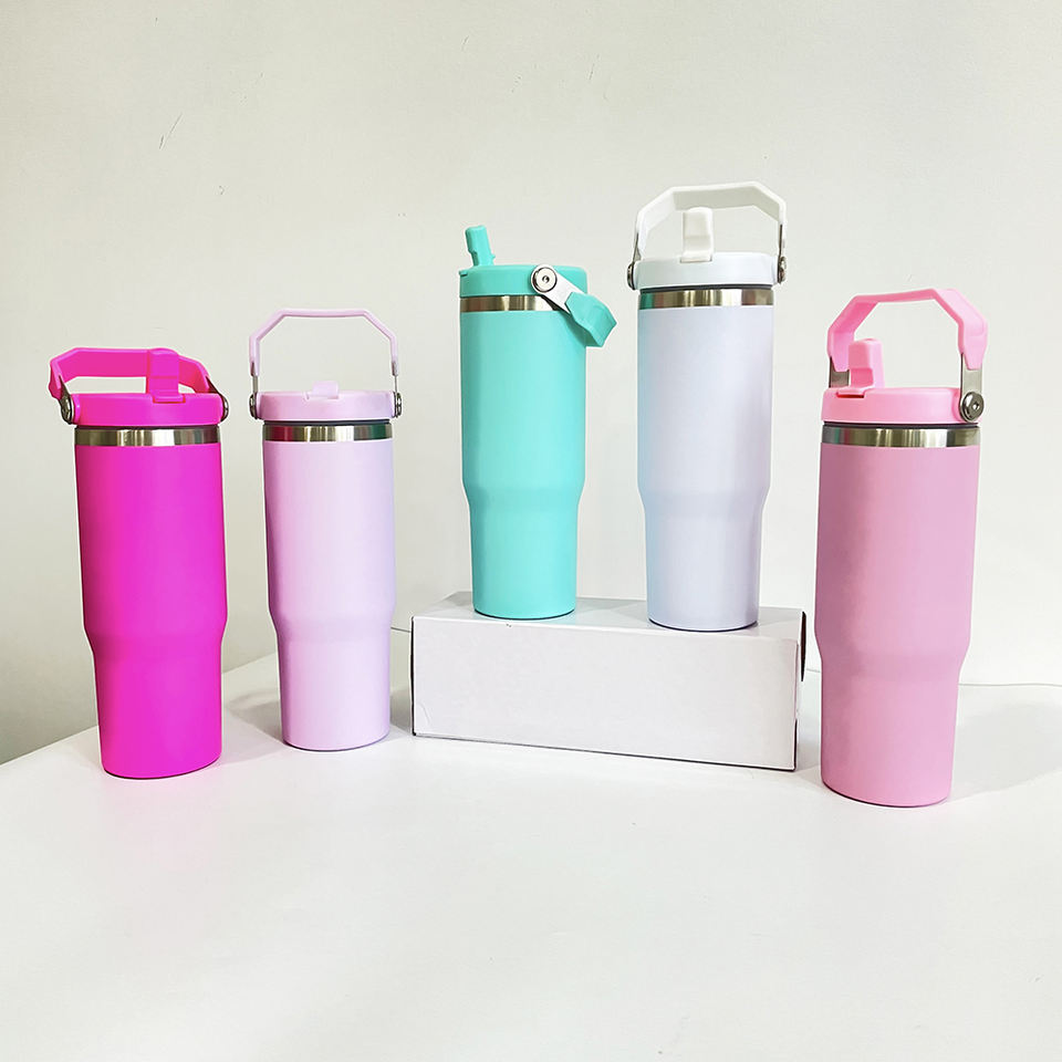 Gobelets à sublimation blancs 40oz avec poignée, effet scintillant et pailleté