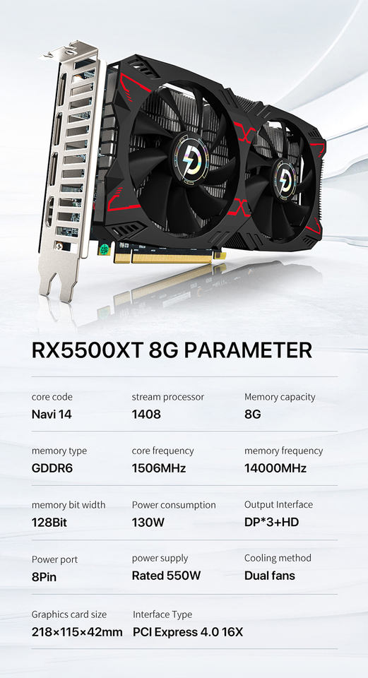 Nouvelle carte vidéo RX 5500XT RX580 XT 8G cartes graphiques de jeu Radeon RX 5700 XT 8G Gddr6 cartes Gpu pour poste de travail pour ordinateur portable de bureau