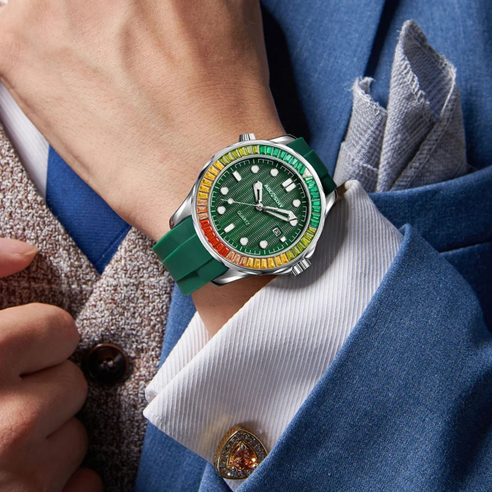 New Rainbow Diamond AOCASDIY Mechanical Calendar Men's Watch for Endurance Sport Business Leisure Fashion Stainless Steel