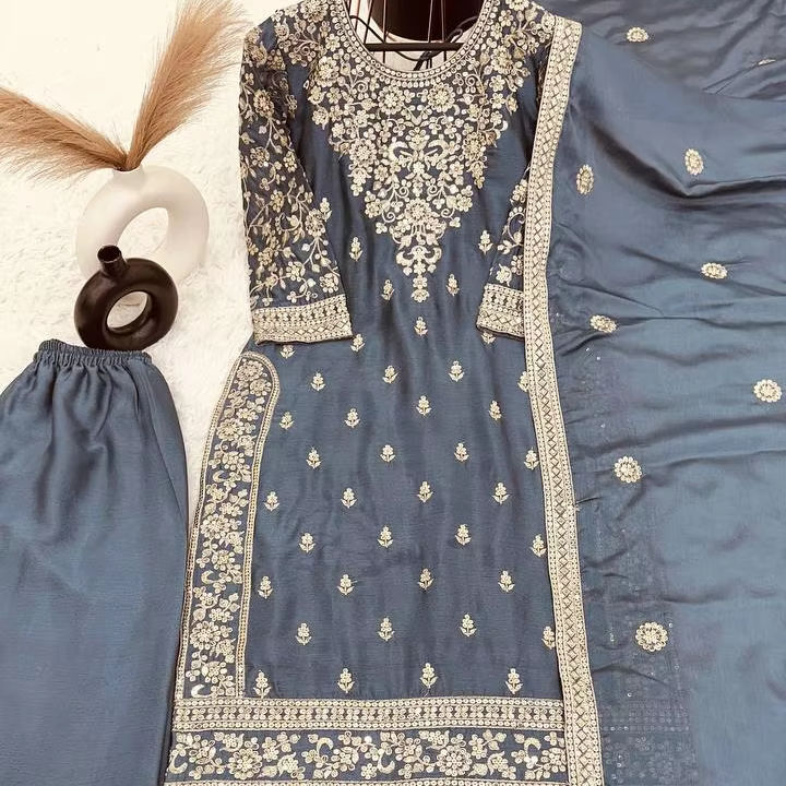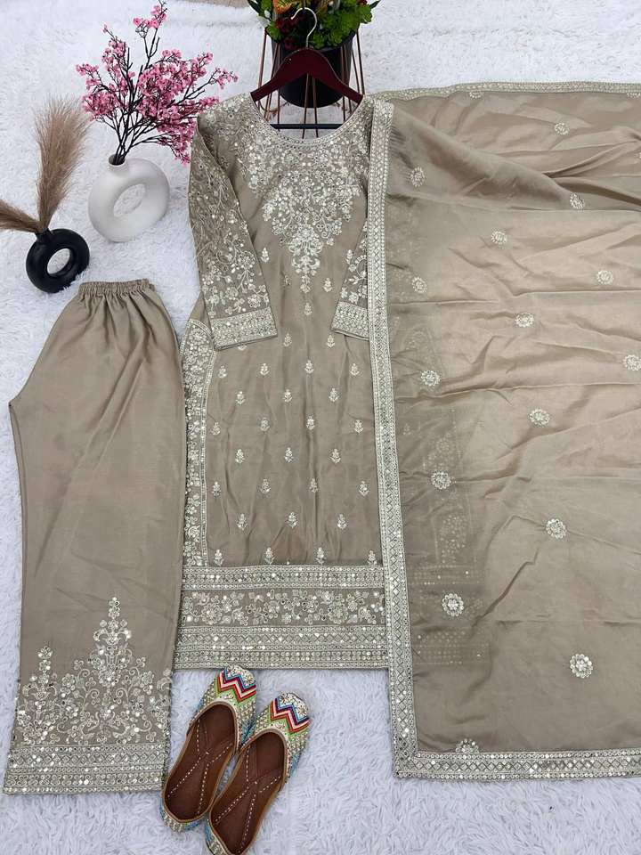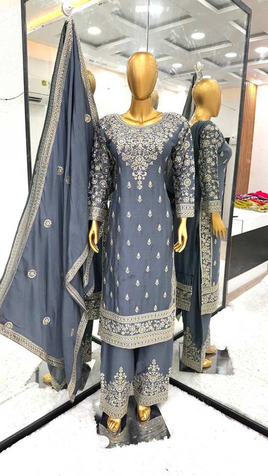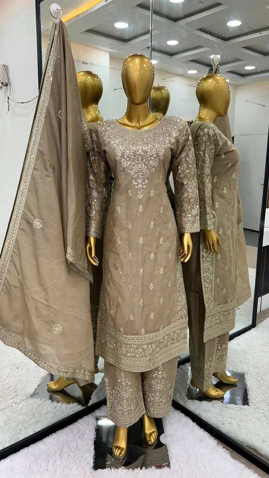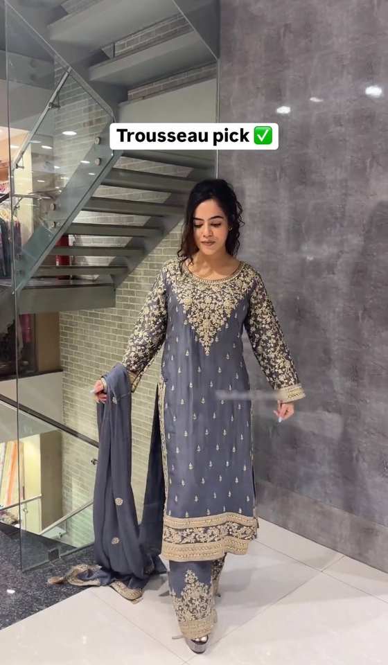 Nouvelle collection prête à l'emploi avec soie de Chinnon pure et séquence de broderie lourde haut-bas et ensemble Dupatta entièrement cousu