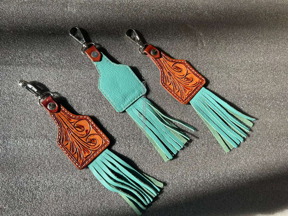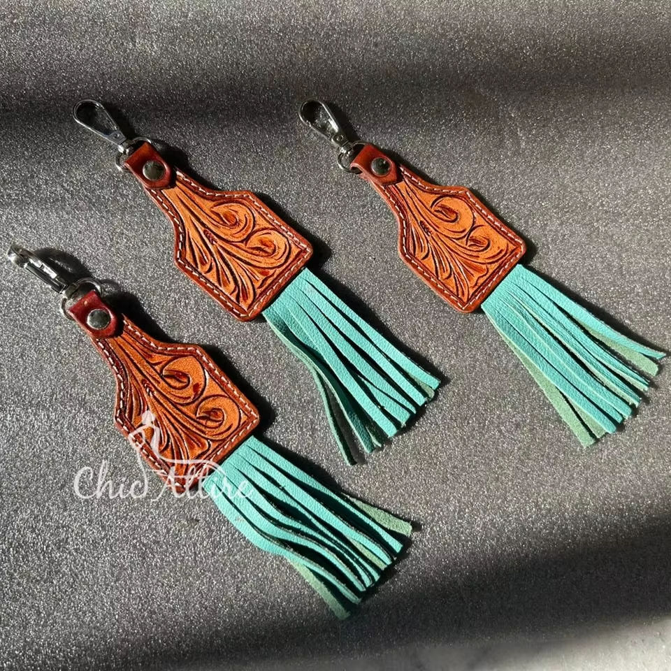 Nouveau véritable fabriqué à la main couleur véritable cuir repoussé mignon charmant gland porte-clés Offre Spéciale Style occidental moderne Floral porte-clés