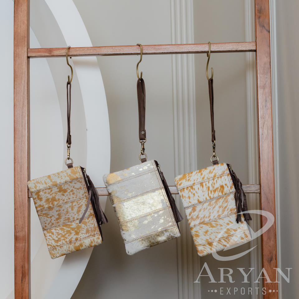 Petite pochette à poignet en cuir de fourrure faite à la main