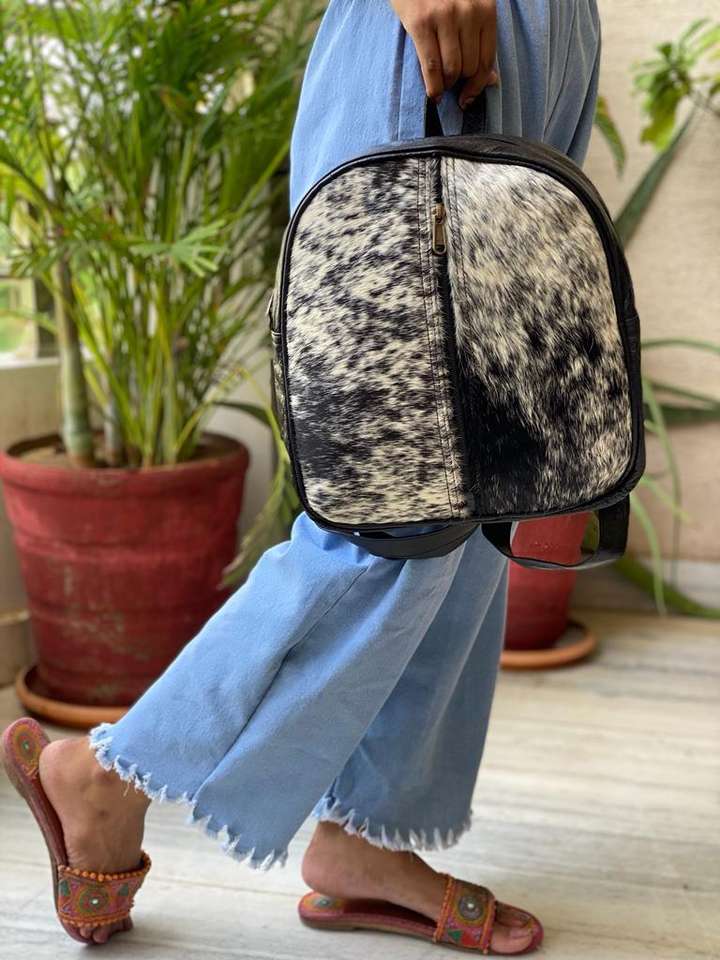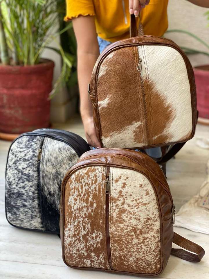 Nouveaux vrais cheveux faits à la main sur cacher fourrure sacs à dos en cuir rétro véritable cuir de vachette naturel Vintage unisexe décontracté travail sacs à dos