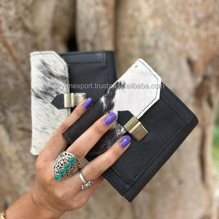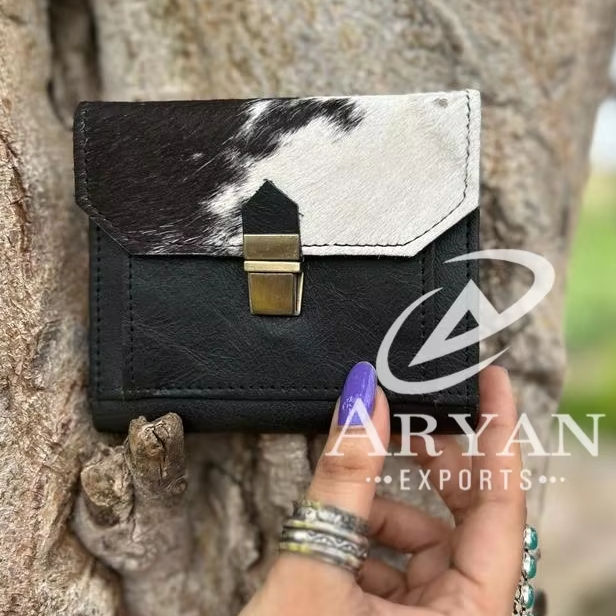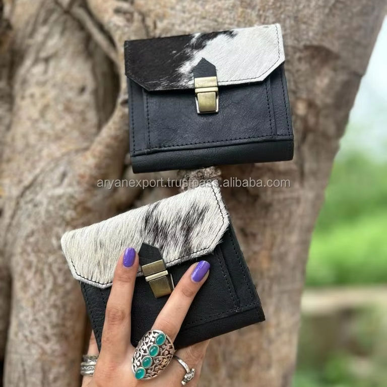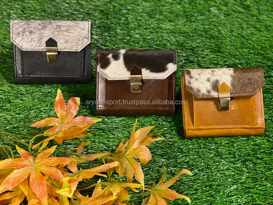 Nouveaux vrais cheveux faits à la main sur peau cuir de fourrure petits portefeuilles de pièces très élégants et durables véritables portefeuilles en cuir de fourrure de vachette véritable