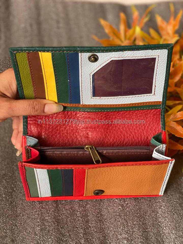 Nouveau véritable fait à la main recyclé arc-en-ciel couleur cuir femmes pochette élégant couleur trapue multi-usage sac à main ATM porte-carte portefeuilles à la mode