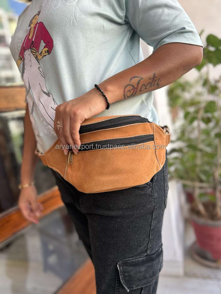 Nouveaux sacs de hanche de taille multi-poches en cuir suédé fait à la main avec sangle réglable sacs banane utilitaires en cuir unisexe élégants