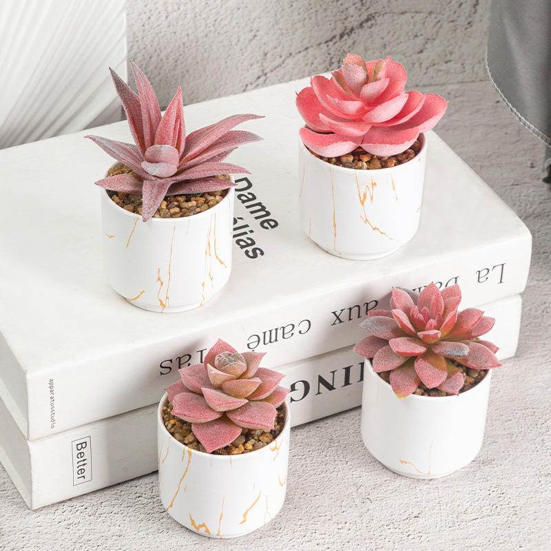 Nouvelle Décoration de Bureau en Plastique Réaliste : Jolies Jardinières Roses Artificielles pour Plantes Succulentes