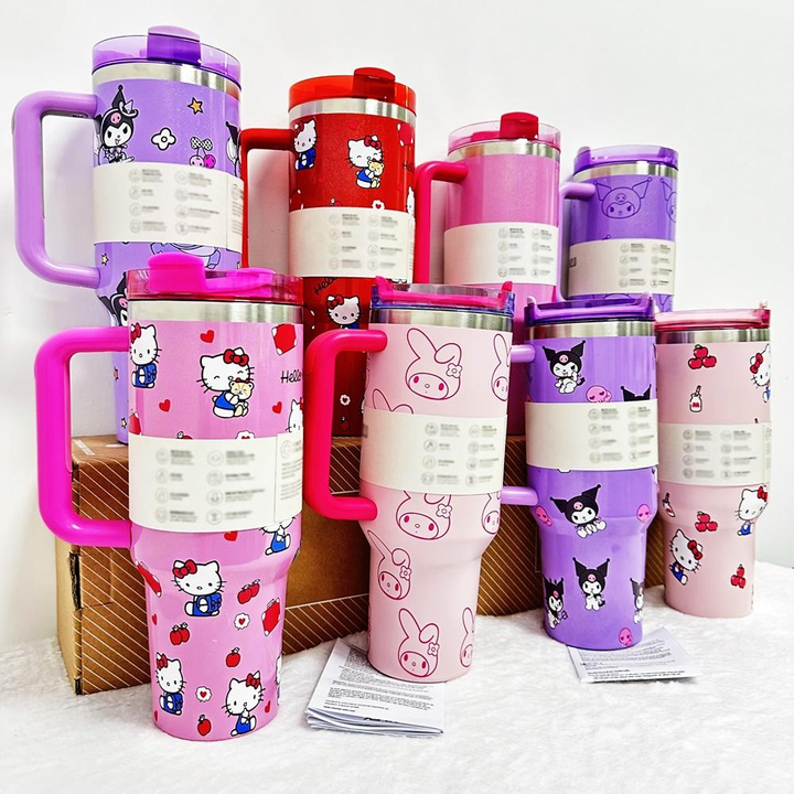 Nouvelle gourde isotherme double paroi en acier inoxydable de 40 oz avec poignée et paille, personnalisable, à prix raisonnable, modèle Senrio Familly KT
