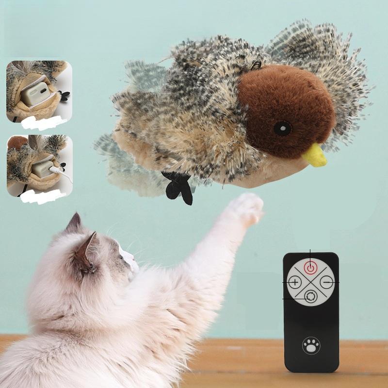 Nouveaux jouets interactifs électroniques pour chats et oiseaux, rechargeables, modernes et luxueux, en polyester, avec des ailes qui battent réalistement, des sons de gazouillis et de miaulements, et de l'herbe à chat