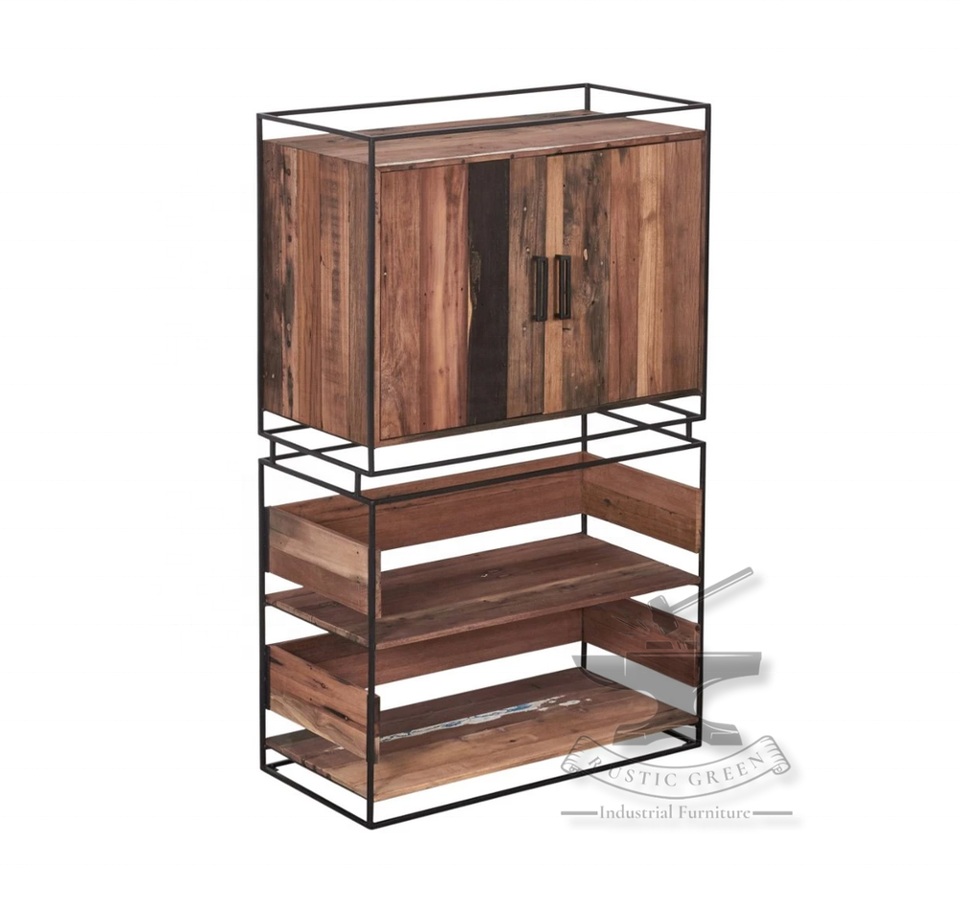 Bibliothèque polyvalente en bois de récupération de style industriel pour la maison, le bureau, la salle à manger et la salle de bain, le stockage de livres scolaires, les meubles de salon
