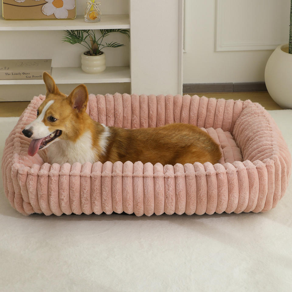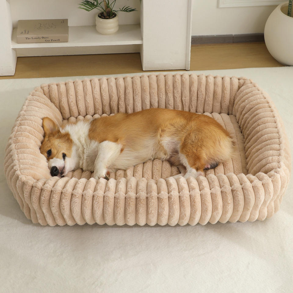 Nouveau lit pour animaux de compagnie en peluche rayé rectangulaire, canapé d'intérieur chaud pour l'hiver, lit confortable pour chien et chat, coussin pour animaux de compagnie