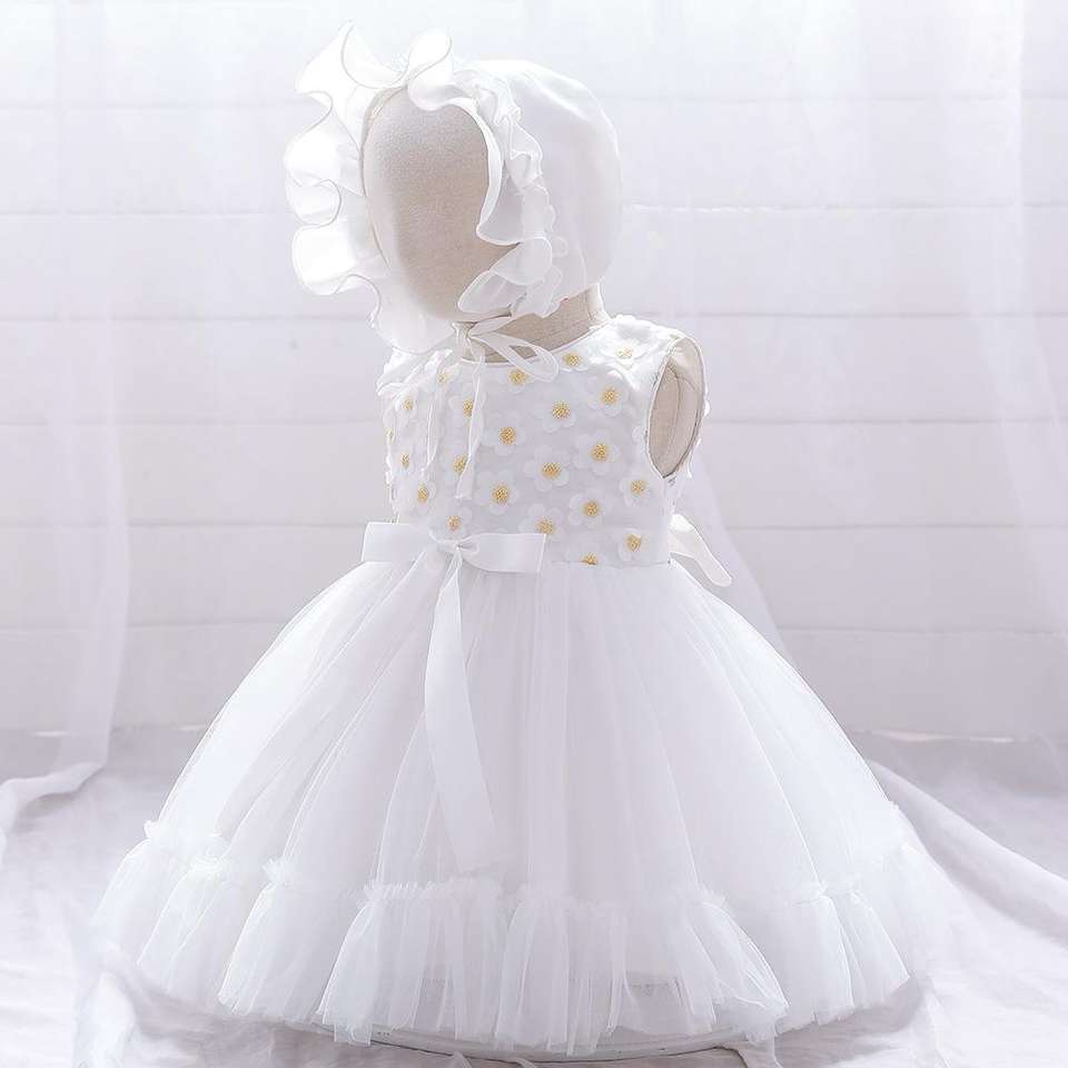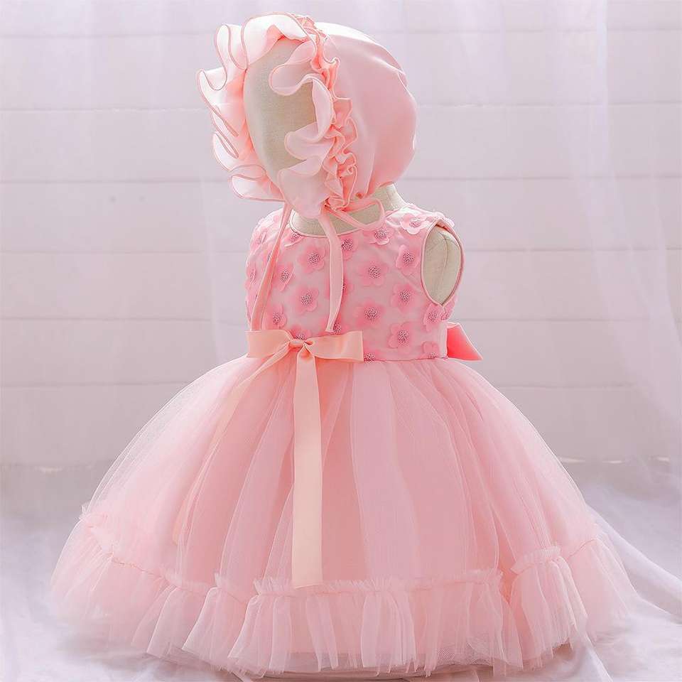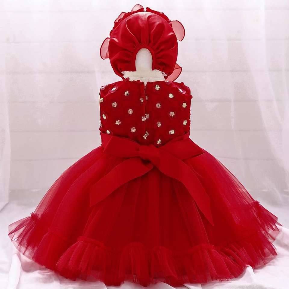 Nouveau rouge Floral maille Tutu robe pour bébé princesse fille robes enfant en bas âge fleur fille vêtements pour été anniversaire baptême robes
