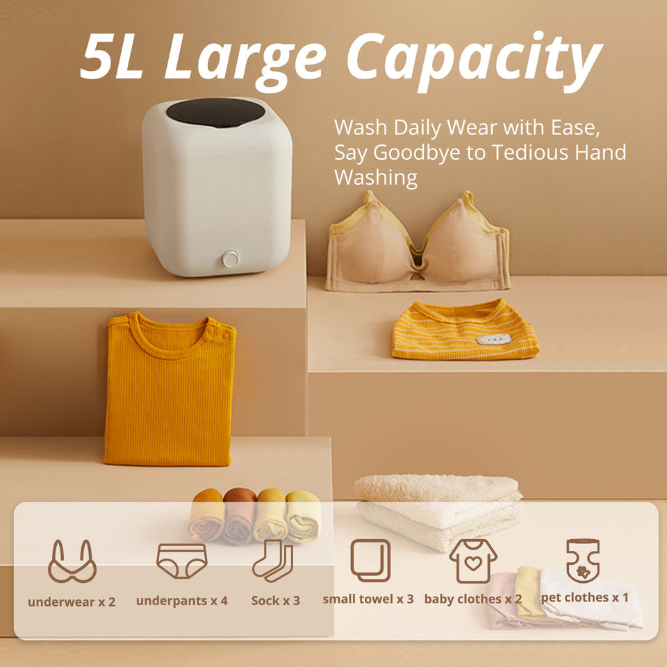 Nouvelle version 5L Mini laveuse portable de grande capacité-Batterie 2000mAh longue durée haute puissance idéale pour les sous-vêtements et les chaussettes XYJ02