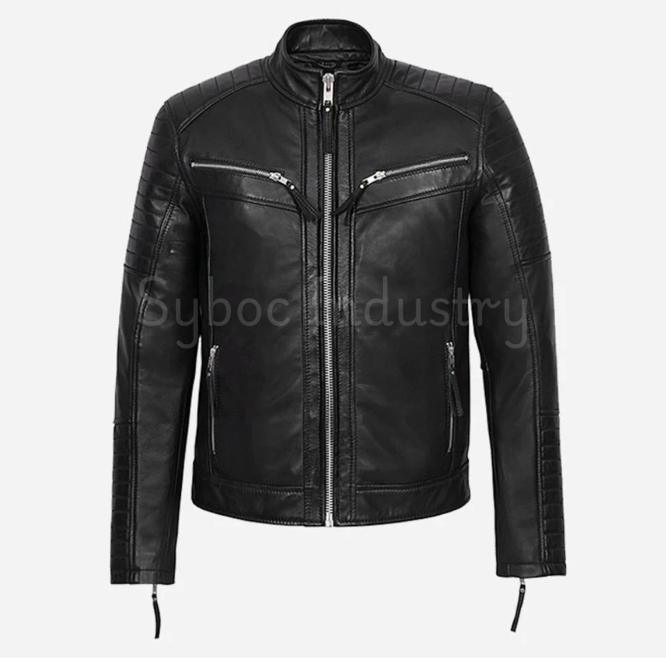Veste de motard en cuir noir pour hommes nouveau café Racer Style véritable veste de moto en cuir de mouton garçon élégant épaule veste rembourrée