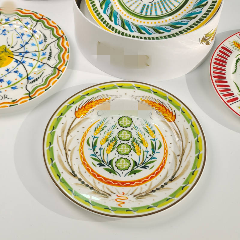 Nouvelle série rétro de printemps : Coffret cadeau de 4 assiettes en céramique pour légumes, assiettes de table occidentales haut de gamme
