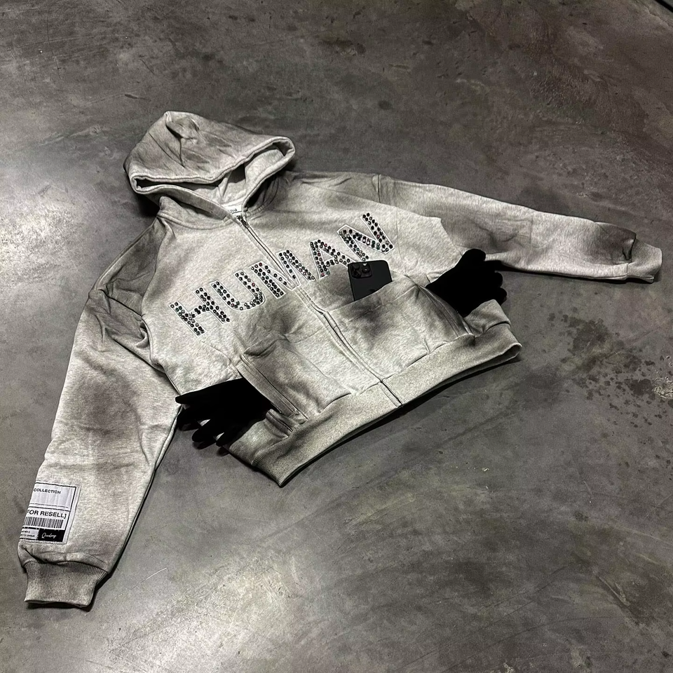 Nouveau strass fermeture éclair sweat à capuche recadrée à manches longues Spay fermeture éclair sweats à capuche pour hommes femmes lavé à capuche veste 2025