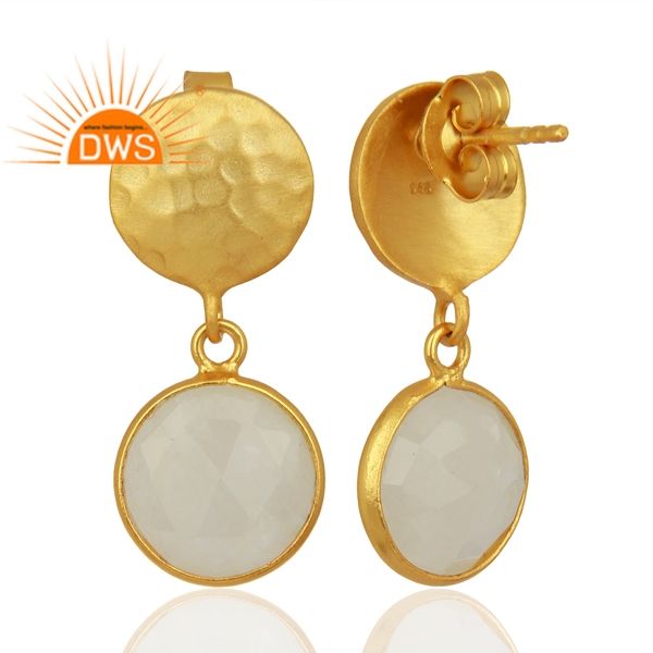Nouvelle boucle d'oreille ronde en pierres précieuses arc-en-ciel en gros finition marteau plaqué or boucle d'oreille de créateur boucle d'oreille en argent 925