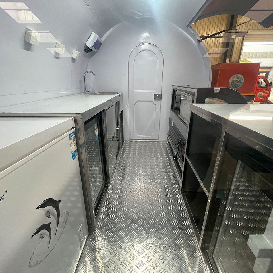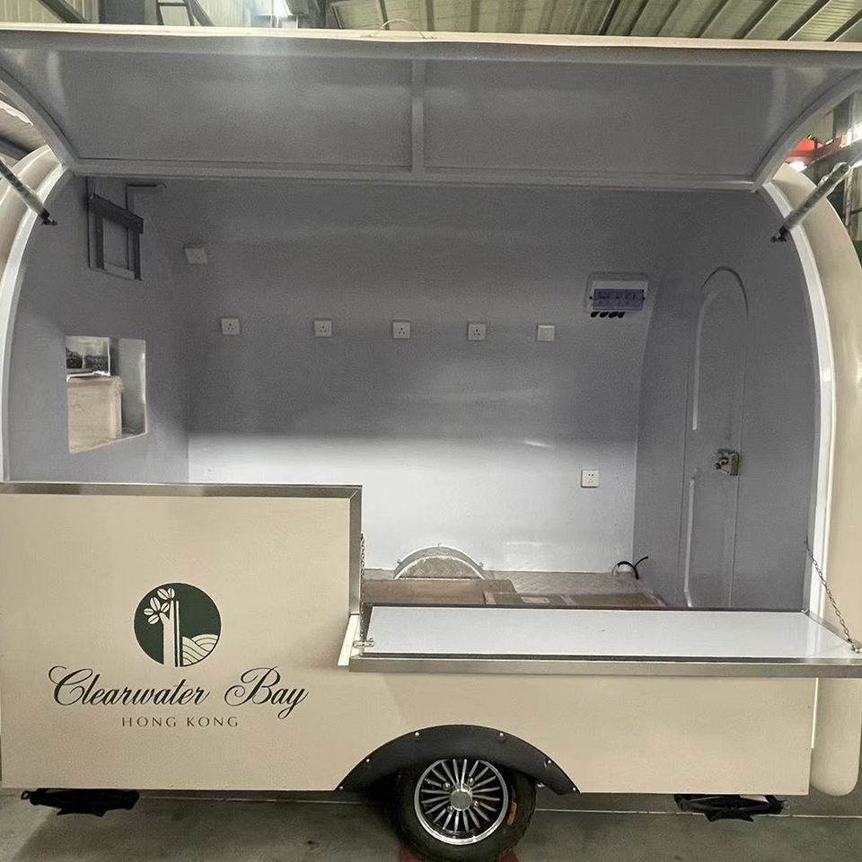 Nouvelle remorque alimentaire ronde et petite en fibre de verre avec des caractéristiques résistantes à la rouille pour les occasions spéciales et les mariages