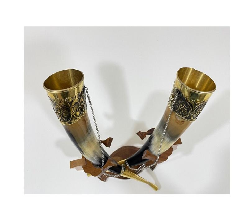 New Royal Handmade Royal Home Decor Horn With Brass Decoration Mugs Most Popular Horn Natural Color Horn Decorative Beer Mug