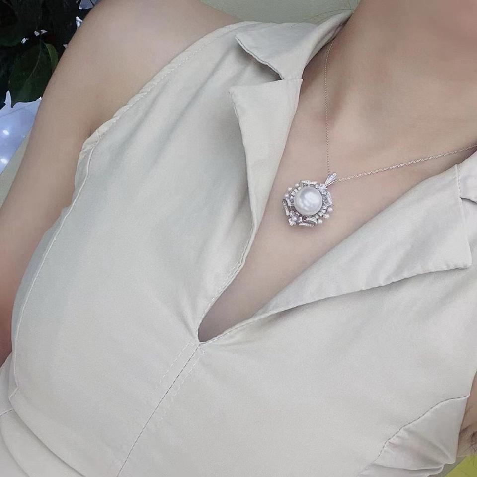 Nouvelle bague en argent pur S925 avec pendentif en perle naturelle ronde de 12-13 mm, sans défaut, chaîne en argent de 18 pouces, cadeau inclus