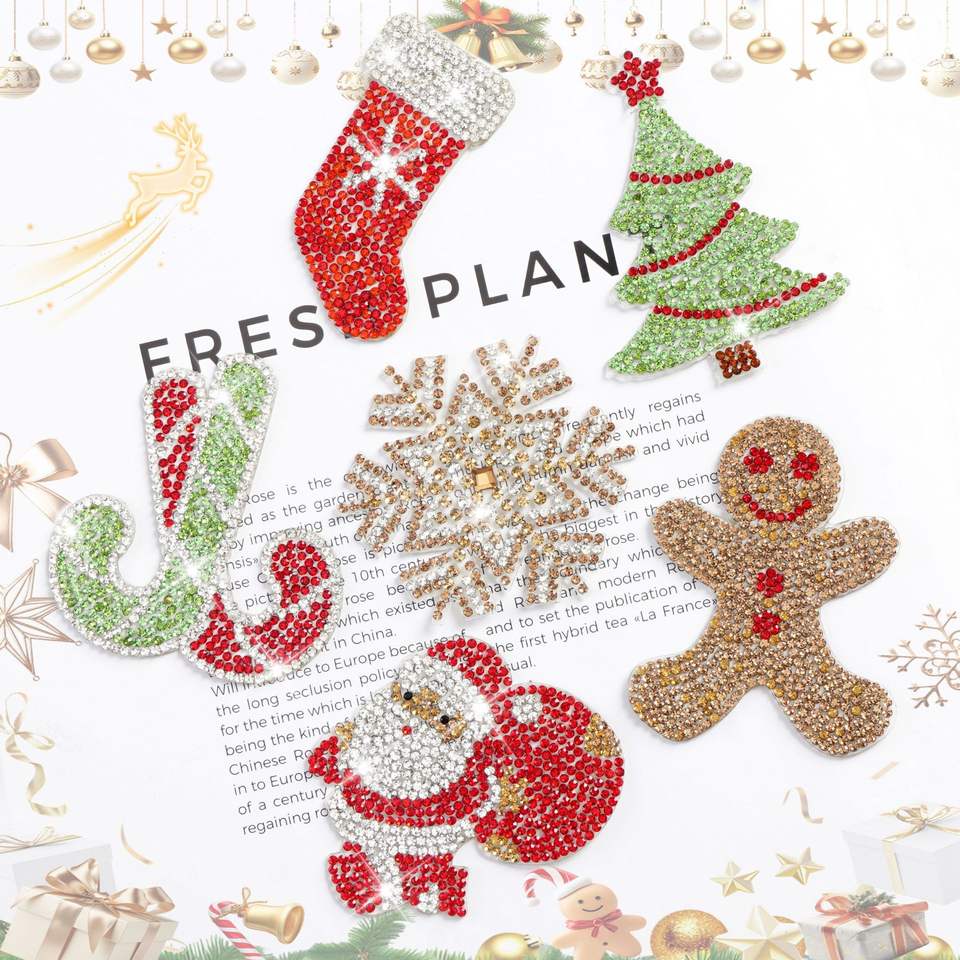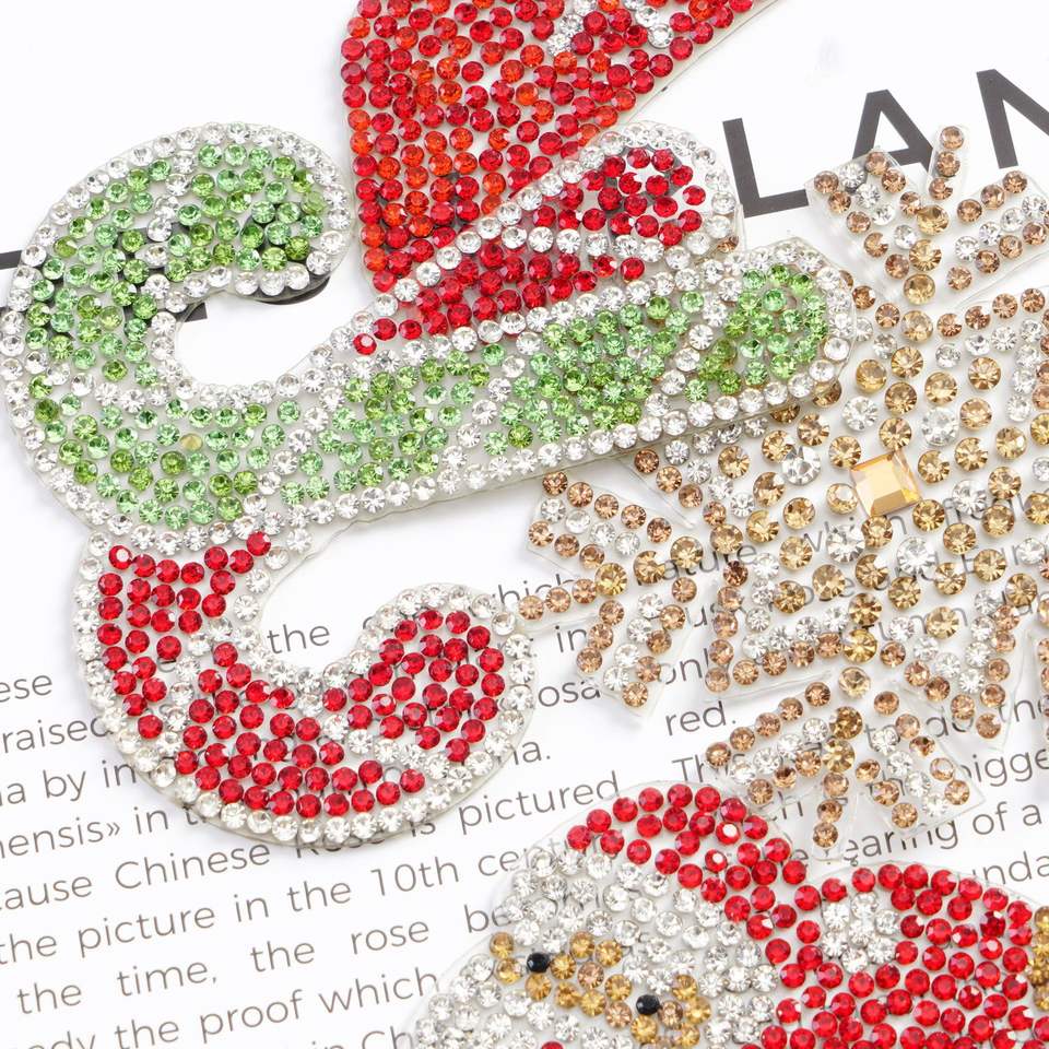Nouveau auto-autocollant Hot Fix strass arbre de noël pain d'épice homme neige chaussettes Patch pour bricolage chaussure chapeau vêtements accessoires