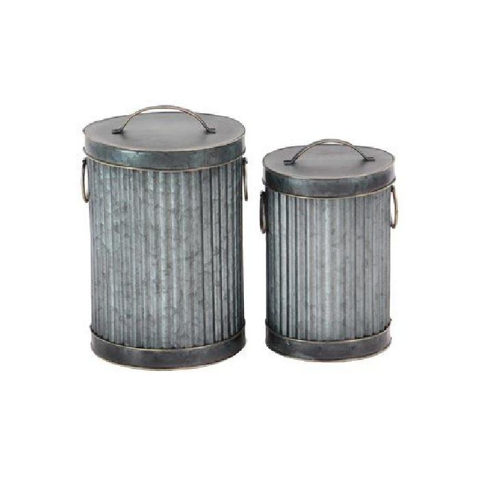 Nouvelle poubelle en métal galvanisé faite à la main, écologique, portable, pour intérieur et extérieur, panier de rangement rond de haute qualité