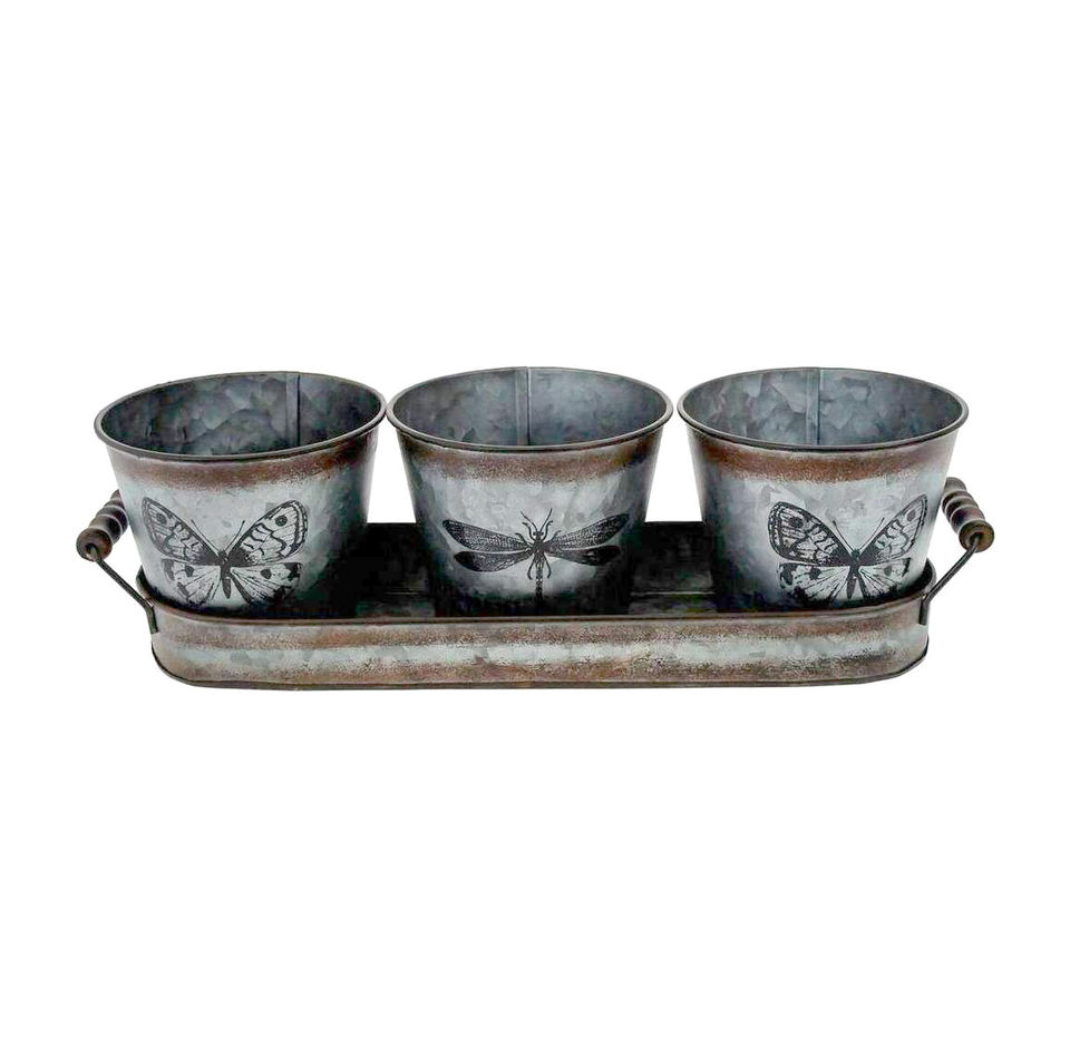 Nouvel ensemble de pots à fleurs rustiques en métal galvanisé avec plateau pour la décoration intérieure et extérieure du jardin, taille et forme personnalisables