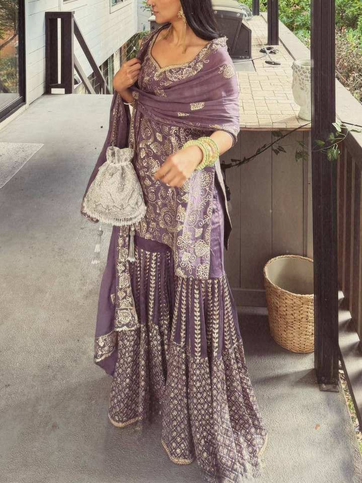 Nouvelle série de tenues de soirée pour femmes, ensemble Sharara et Dupatta, tenue ethnique élégante pour les fêtes et les mariages