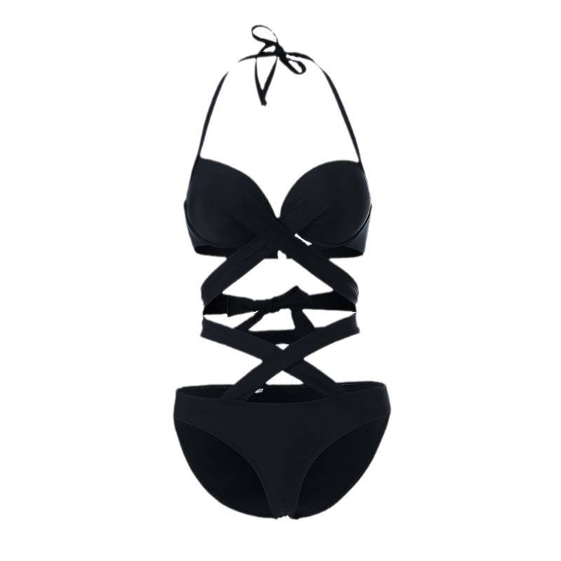 Nouveau Maillot de Bain Deux Pièces Sexy Coréen à Bretelles Croisées et Dos Nu, Évidé, Uni, pour Femme 2026 – Noir et Blanc