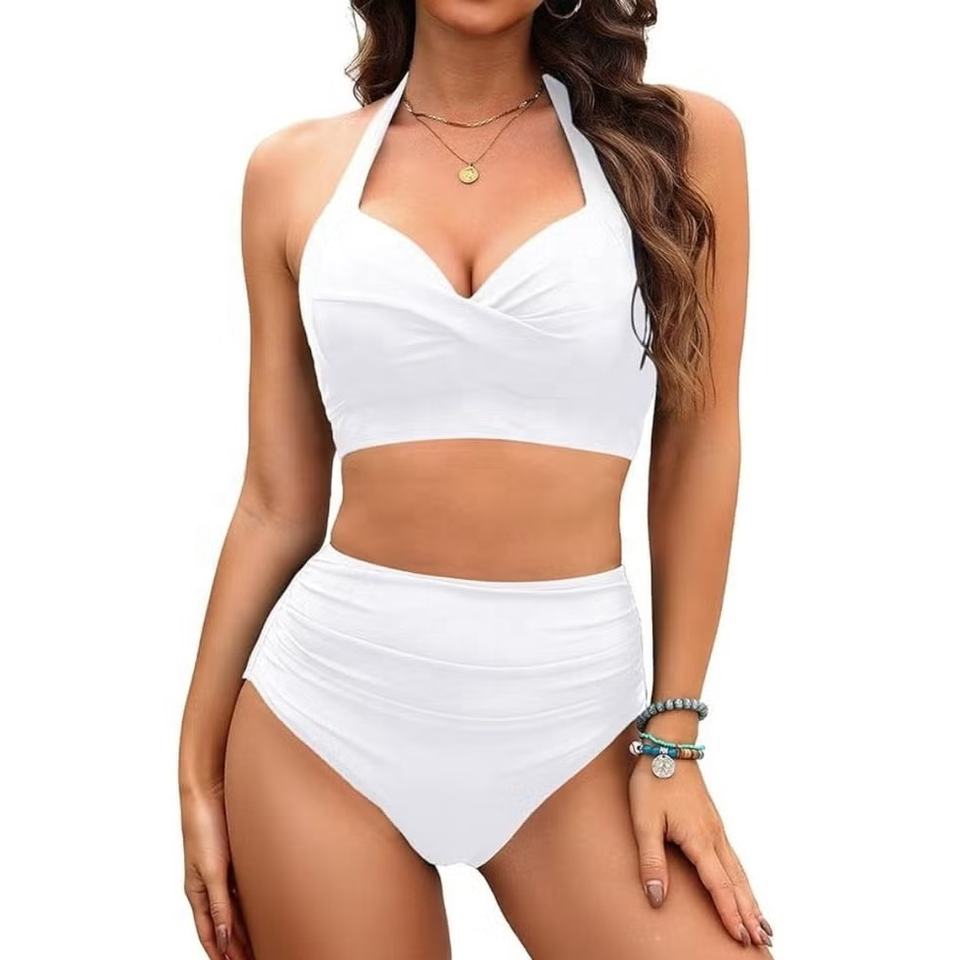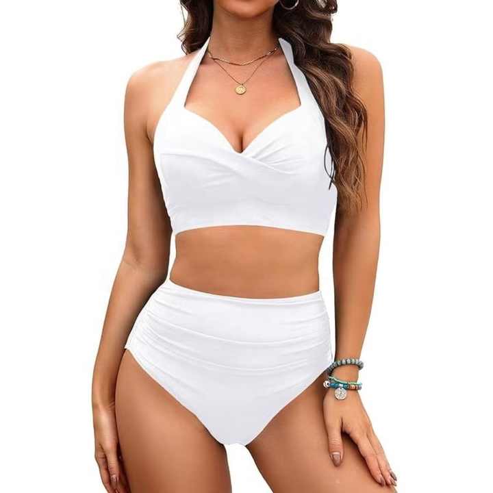 Nouveau maillot de bain deux pièces sexy uni à manches courtes, ensemble bikini froncé, tenue de plage personnalisée pour femme