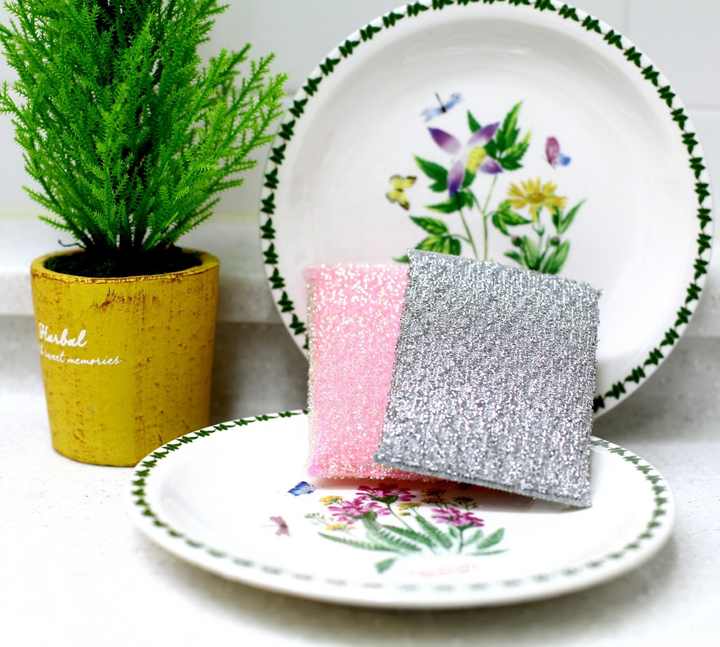 Lurex argent brillant, éponge de nettoyage de cuisine hygiénique anti-rayures de différentes couleurs, populaire dans de nombreux pays européens