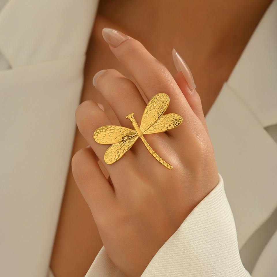 Nouveau Simple personnalisé 18K plaqué or bague dame géométrique libellule conception ouverture bijoux fins accessoires anneau
