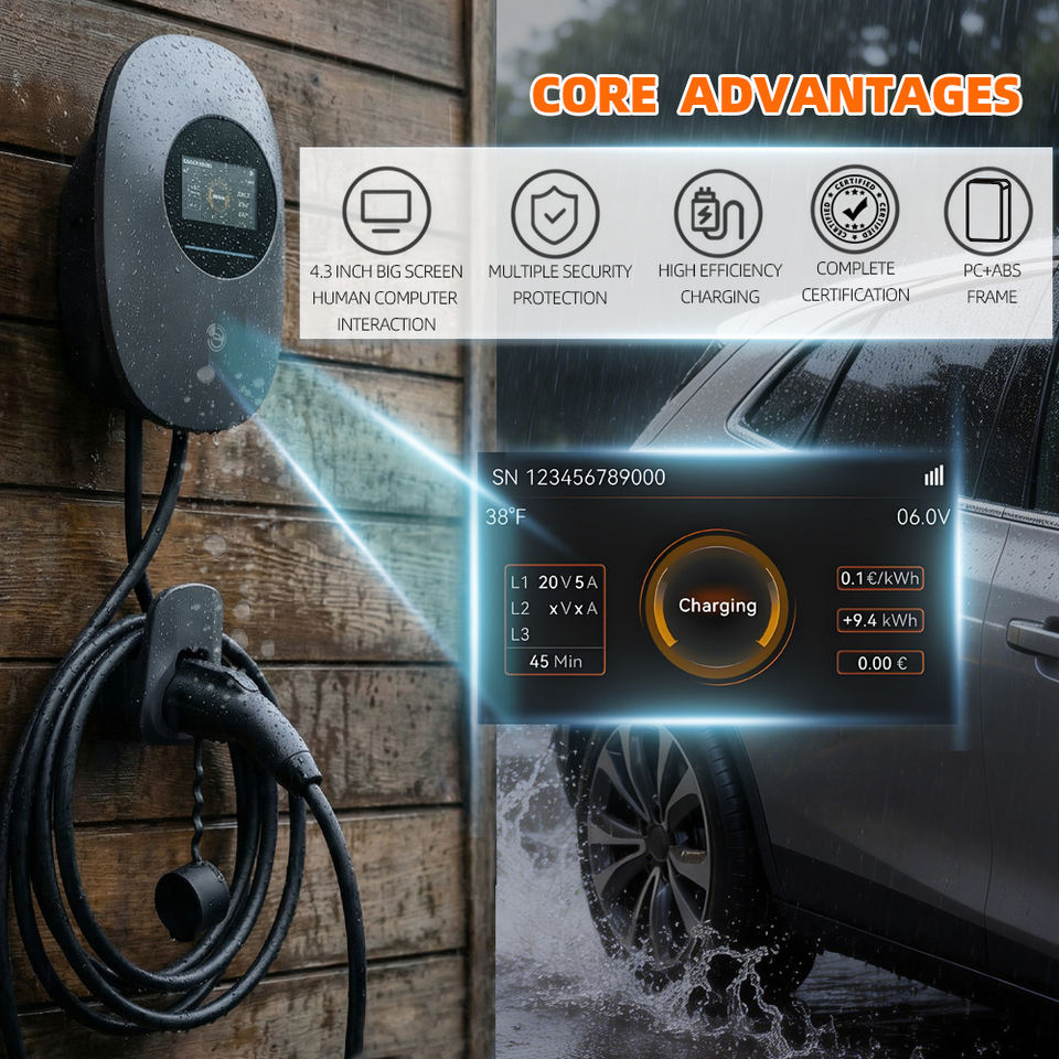 Nouvelle borne de recharge murale intelligente pour véhicules électriques 7kW 11kW 22kW Type 2 Câble 5M Station de recharge domestique AC Carte RFID pour connexion Wi-Fi
