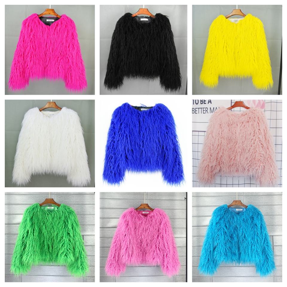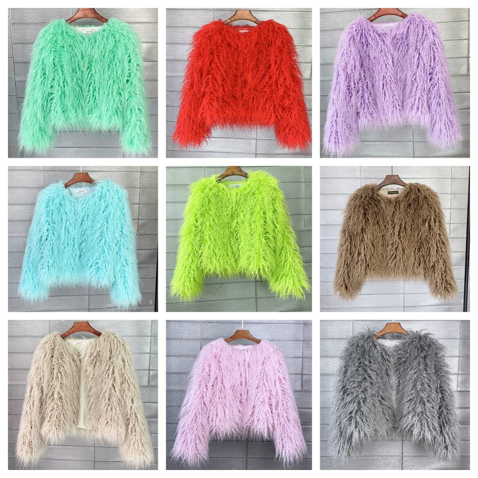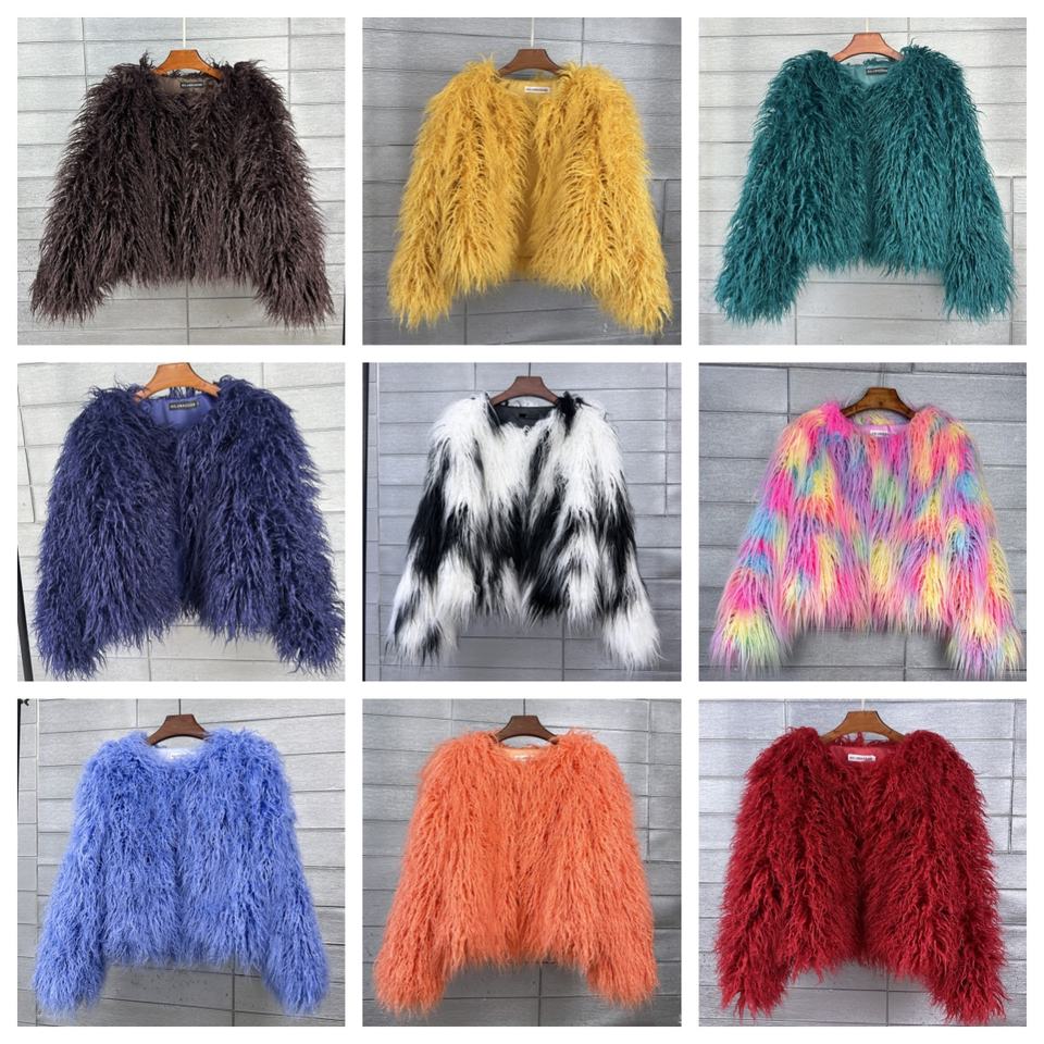 Nouvelle veste courte en fausse fourrure de laine longue de couleur unie pour femme, couleur arc-en-ciel, fourrure de mouton en peluche, manteaux en fausse fourrure pour femmes