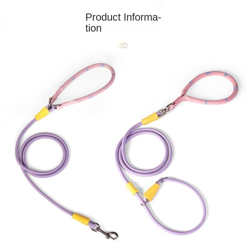 Nouvelle laisse pour chien à motif uni, en polyester anti-rupture, avec poignée rembourrée et ruban décoratif, accessoires pour animaux de compagnie