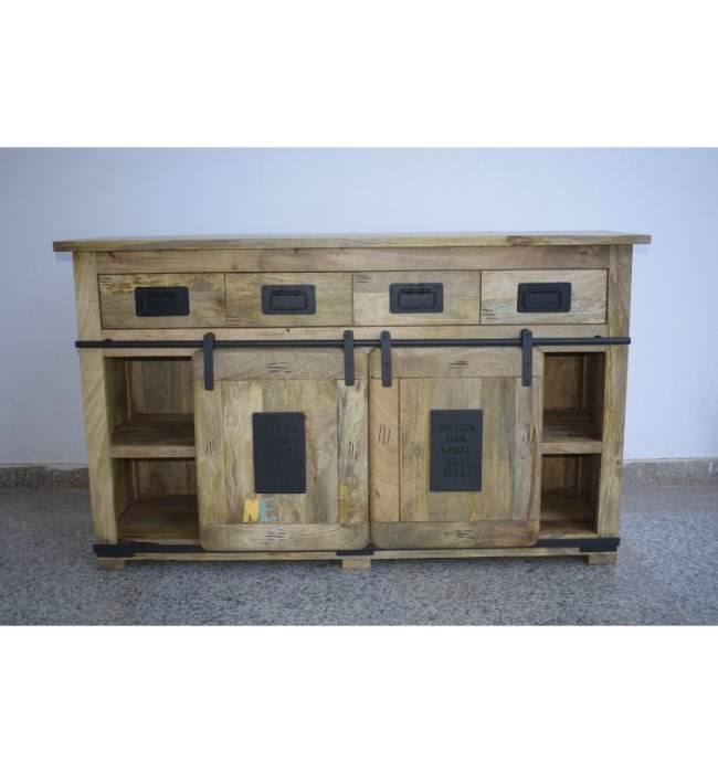 Nouveau buffet en bois massif avec portes coulissantes 180 cm avec commode à 7 tiroirs et 2 portes coulissantes Vente à chaud