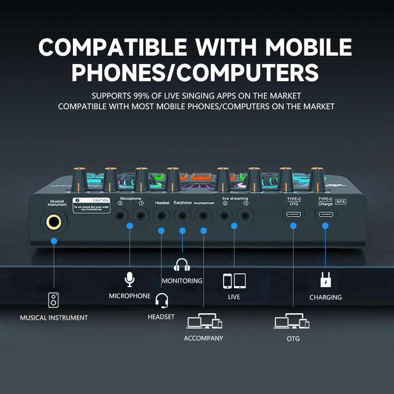 Réduction de bruit, Voix réglable, Plusieurs Effets sonores, Plusieurs sons électroniques, Connexion sans fil de soutien, Soutenir deux personnes streaming