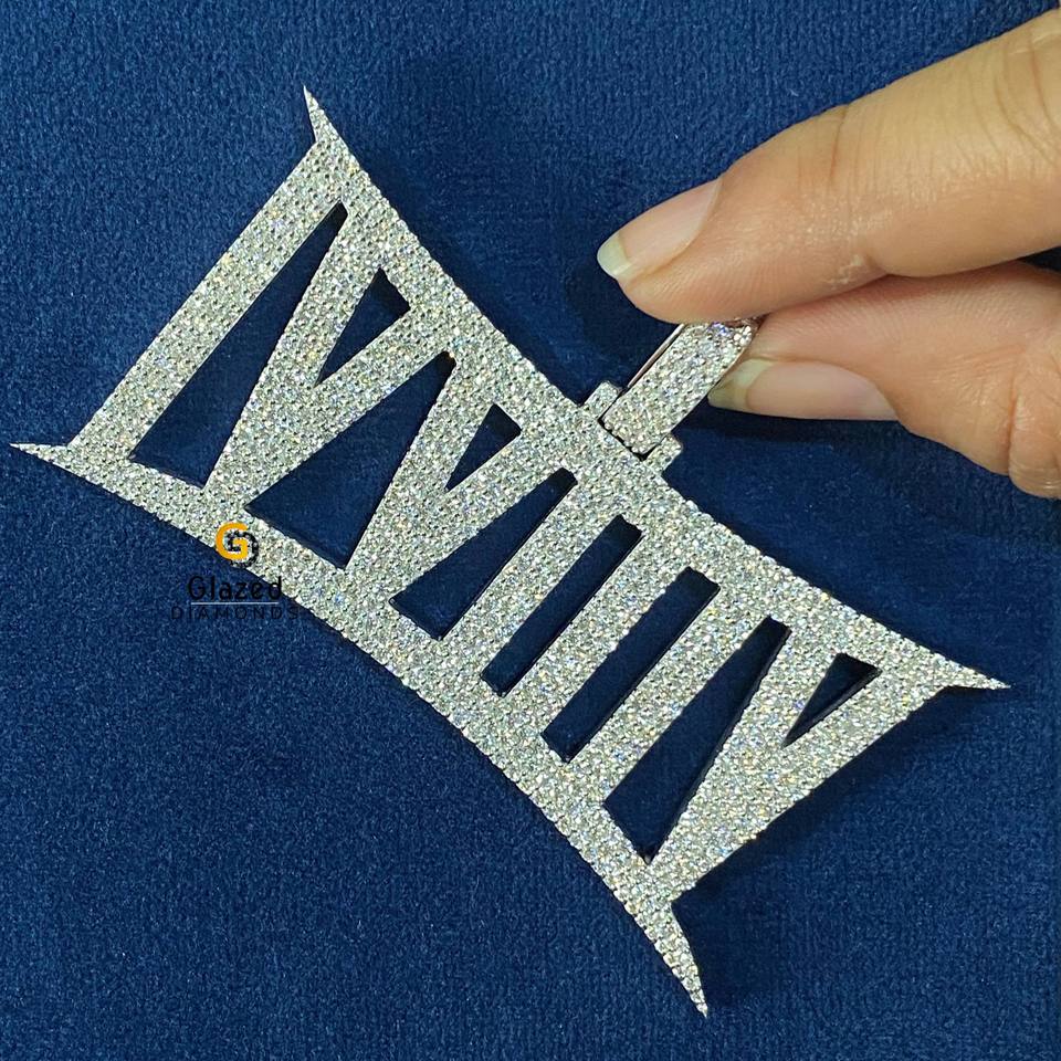 Nouveau pendentif Hip Hop numéro romain entièrement glacé étincelant rond taille brillante laboratoire cultivé VVs diamants D incolore 10K or blanc