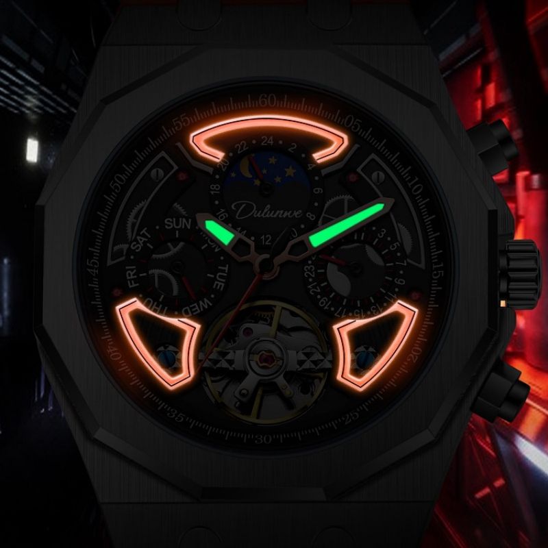 Nouveau sport étanche en acier inoxydable fluorescent silicone montres tourbillon automatique mécanique montre hommes de luxe