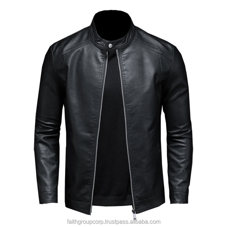 Product name:Men Stand Collar Slim Pu Leather Jackets