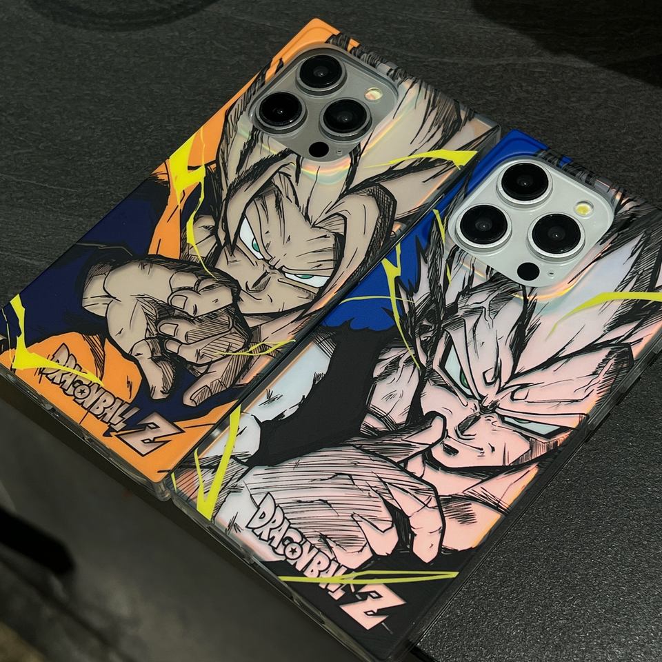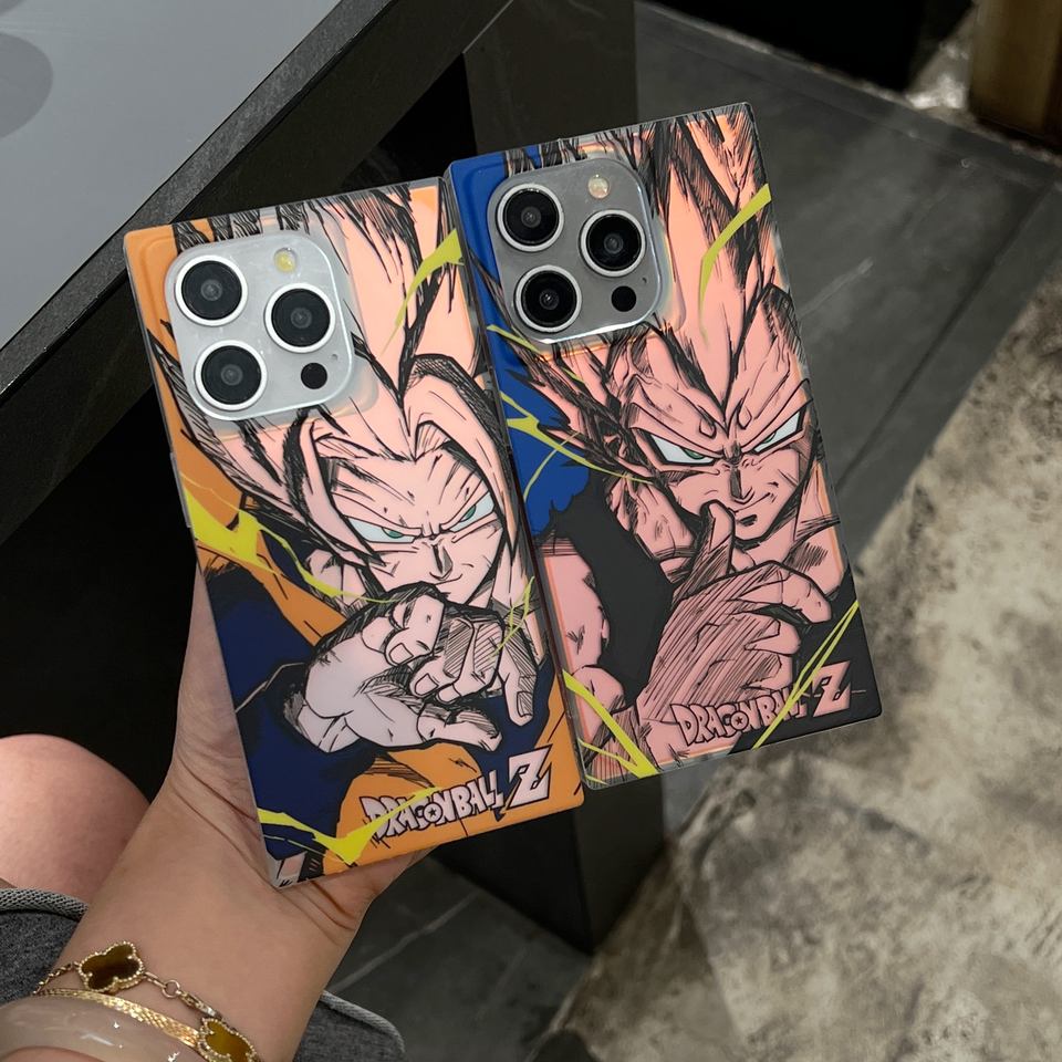 Nouveau étui de forme carrée IMD TPU bouton Anime Anime Dragon Ball Goku Vegeta Carton coque de téléphone pour IPhone 15 Pro Max 16 14 coque arrière